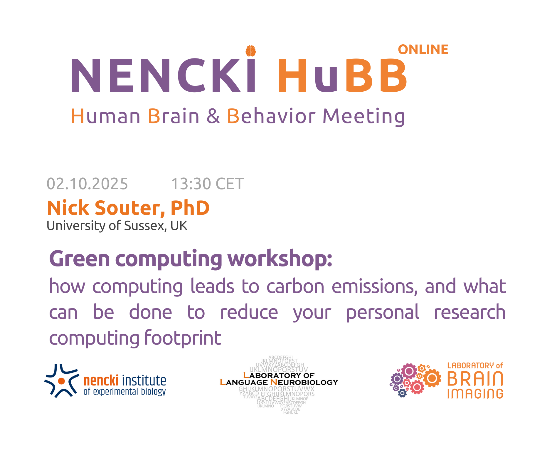 You are cordially invited to the upcoming Nencki Human Brain and Behavior Meeting (Nencki HuBB), organized by the Laboratory of Brain Imaging (LOBI) and the Laboratory of Language Neurobiology (LLN).